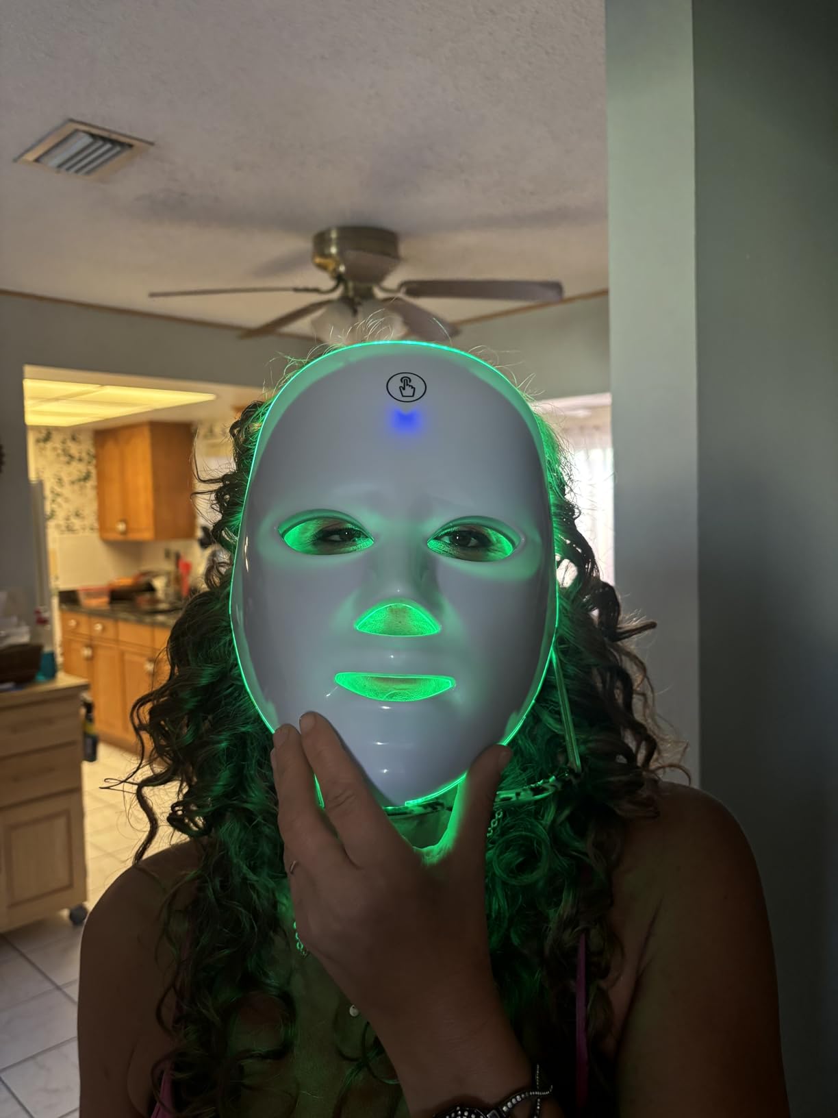 Love this face mask. It is full coverage so it is targeting everywhere. You can use it without the cord . There are seven different modes for anti-aging, which is the one I use the most. But there is also one for acne control, soothing your skin, one for brightening, another or rejuvenation, one for calming, and one for white revitalization. I use it once a week for about fifteen minutes. I already have noticed a difference in my skin's brightness and clarity. So exciting.